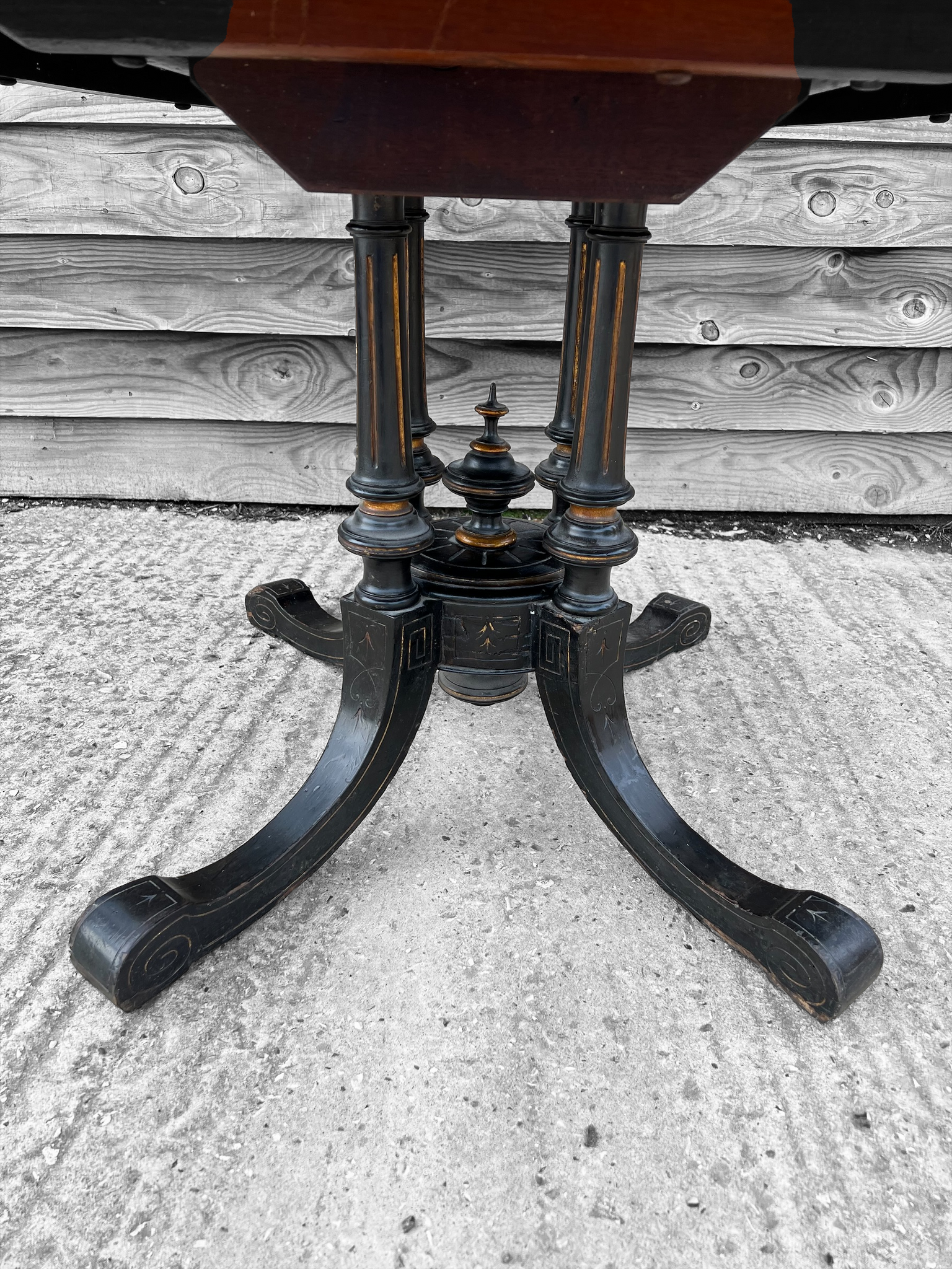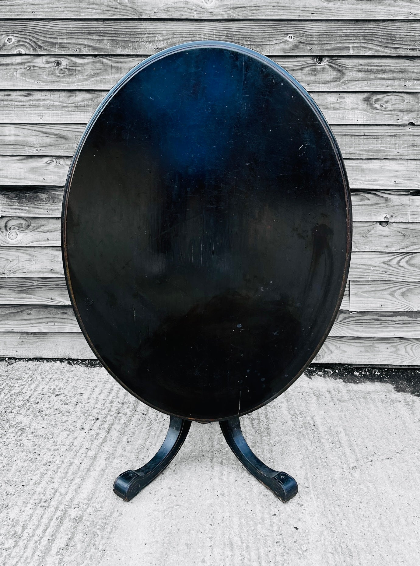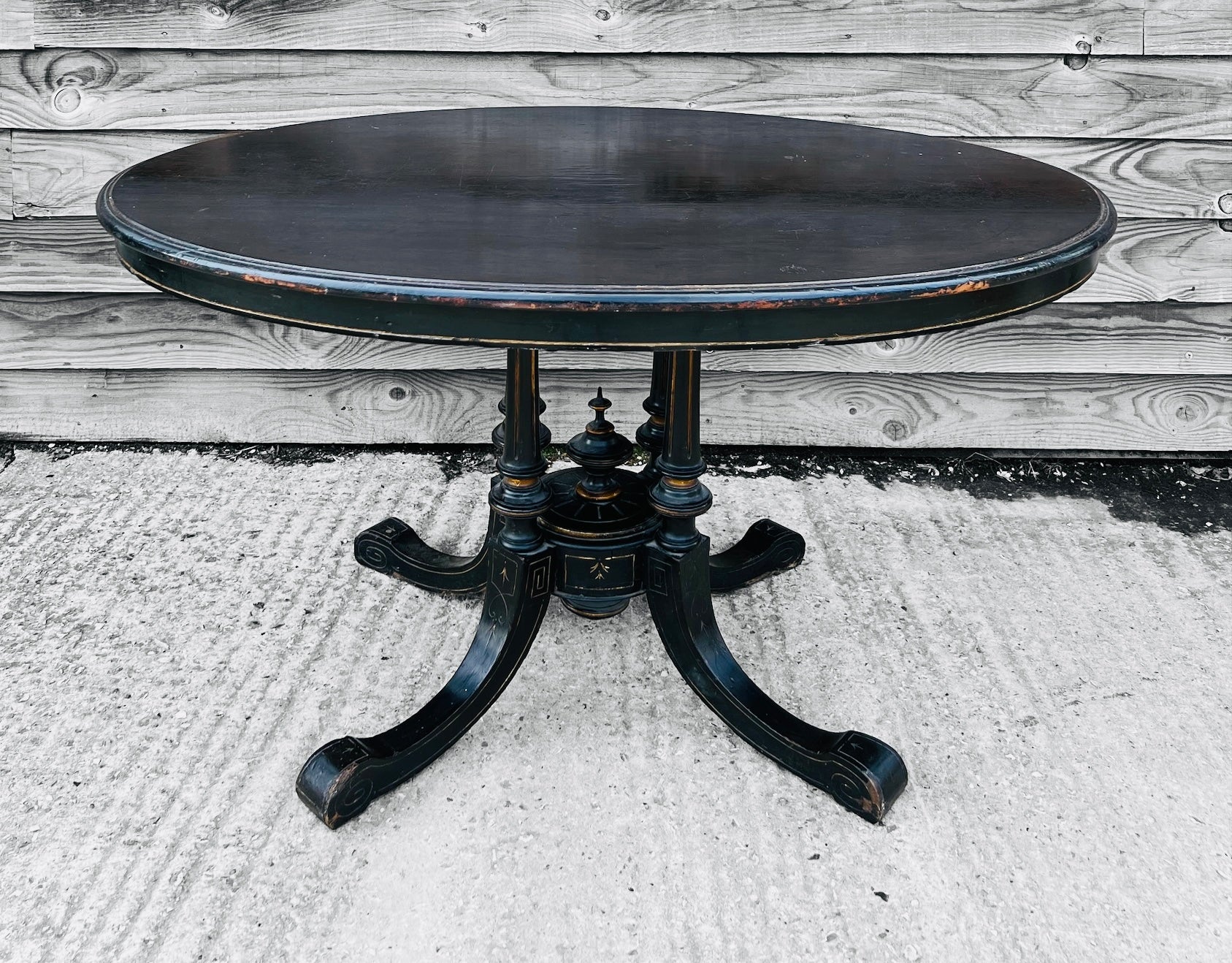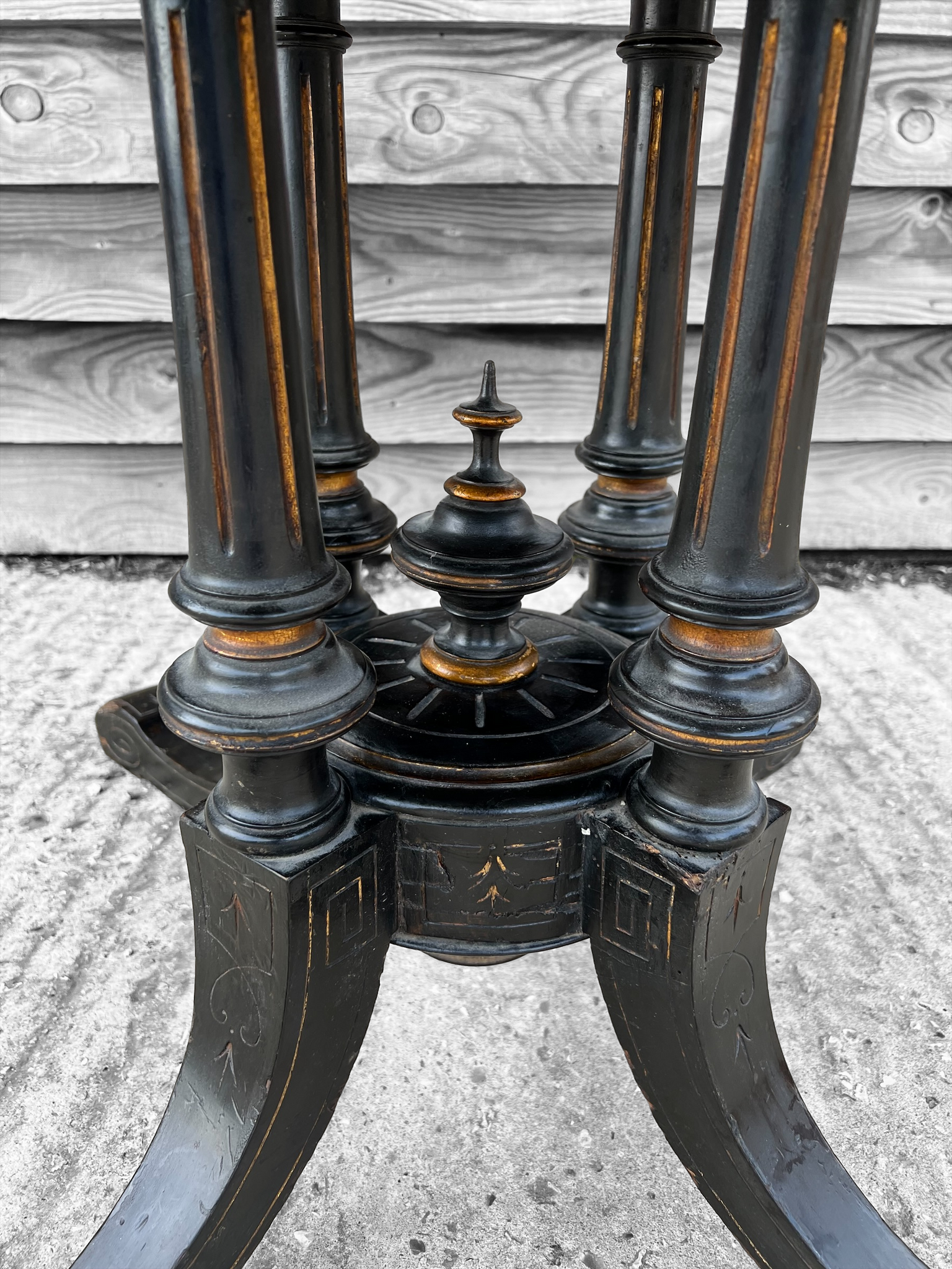 ANTIQUE 19TH CENTURY FRENCH EBONISED INLAID TILT TOP CENTRE TABLE, c1900